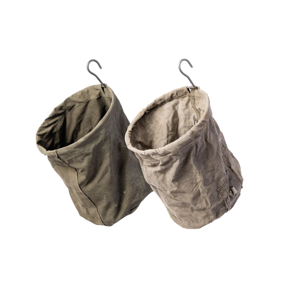 Constructed from recycled tent fabrics, this Vintage Tent Fabric Hook Basket not only infuses a distinctive charm into your space but also underscores a commitment to sustainable practices. It excels as a functional storage solution and doubles as a conversation piece, each with its own intriguing backstory.